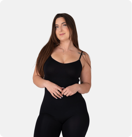 Skip multiple garments. Our bodysuit provides head-to-hip shaping in a single comfortable piece.